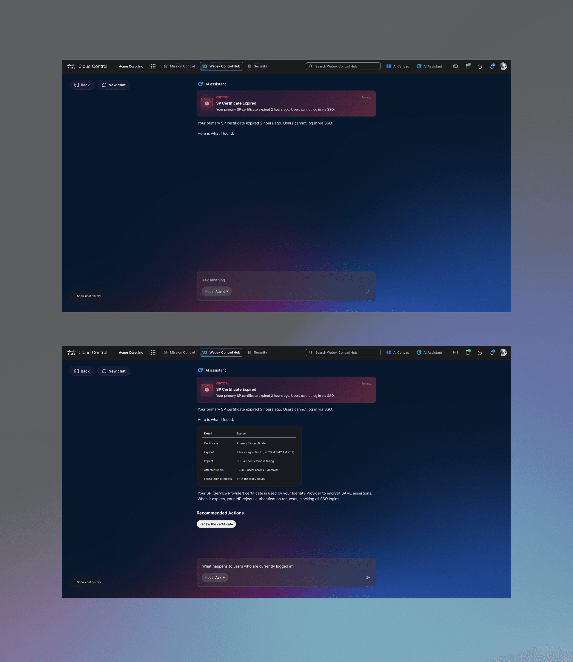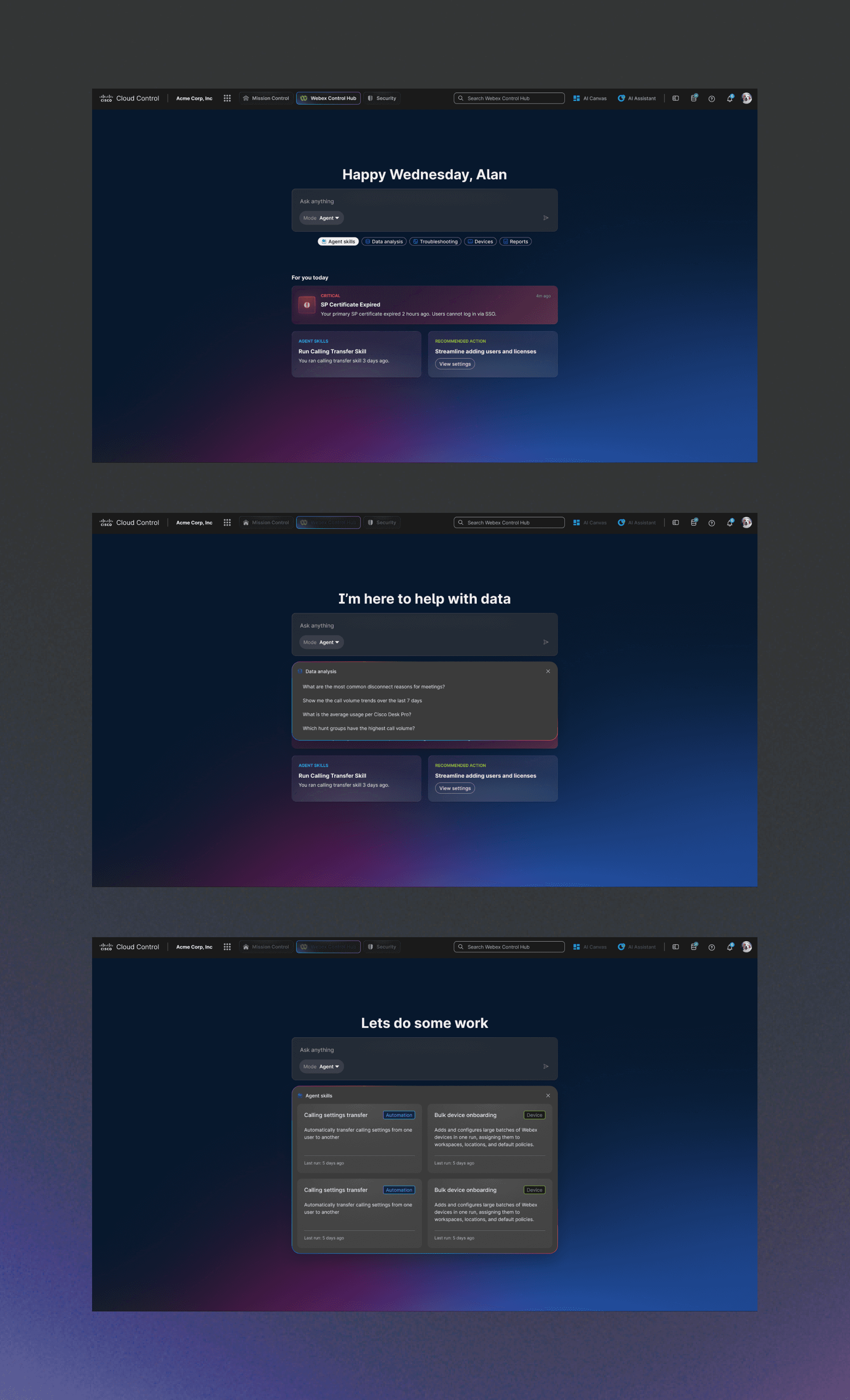 AI agent workspace for Cisco Control Hub that automates operations. This is still early stage concept work.